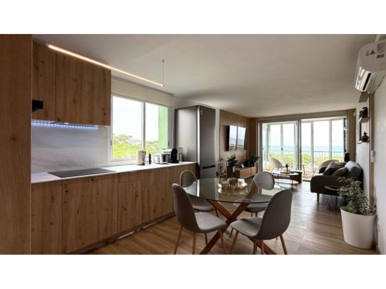 DescripciónEste encantador apartamento en venta se encuentra en la zona de Centre-Platja Gran, en Platja d Aro, a pocos minutos de Cala Rovira. Con una superficie total de 71 m² y 2 habitaciones dobles, este inmueble ofrece comodidad y funcionalidad y ha sido objeto de una reforma integral finalizada en 2025, dirigida por un arquitecto para garantizar un diseño moderno y funcional. El apartamento cuenta un salón-comedor luminoso y acogedor, con cocina es americana y totalmente equipada, 1 baño. Desde el salón, se accede a una terraza cerrada de 7 83 m² con vistas panorámicas al mar, perfecta para gozar de un paisaje espectacular. Una de las habitaciones también tiene acceso a terraza trasera con vistas a la montaña. Está adaptado para personas con discapacidad. Además, dispone de aire acondicionado, calefacción eléctrica y está completamente reformado. El edificio cuenta con ascensor y parking, y el apartamento tiene su propio jardín y una terraza cubierta de 7 m². ¡No pierdas la oportunidad de adquirir esta propiedad soleada y con buen nivel energético en una de las mejores zonas de Platja d Aro!
